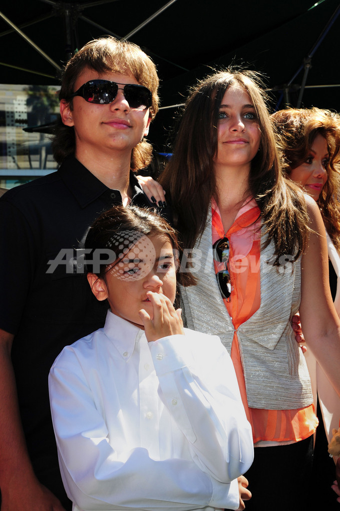 記念式典にはプリンス(Prince)君(14)、パリス(Paris)ちゃん(13)、プリンス・マイケル(Prince Michael)君(9)の他、マイケルさんの母親キャサリン(Katherine Jackson)さん、姉のラトーヤ・ジャクソン(La Toya Jackson)さん、アントニオ・ビヤライゴサ(Antonio Villaraigosa)ロサンゼルス市長も出席した。(c)AFP
