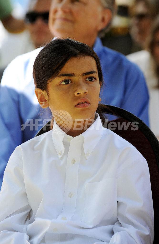 記念式典にはプリンス(Prince)君(14)、パリス(Paris)ちゃん(13)、プリンス・マイケル(Prince Michael)君(9)の他、マイケルさんの母親キャサリン(Katherine Jackson)さん、姉のラトーヤ・ジャクソン(La Toya Jackson)さん、アントニオ・ビヤライゴサ(Antonio Villaraigosa)ロサンゼルス市長も出席した。(c)AFP
