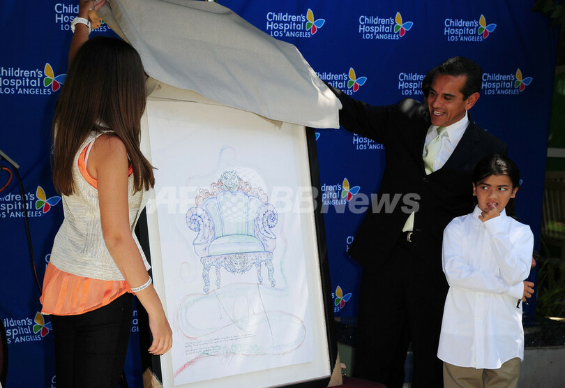 記念式典にはプリンス(Prince)君(14)、パリス(Paris)ちゃん(13)、プリンス・マイケル(Prince Michael)君(9)の他、マイケルさんの母親キャサリン(Katherine Jackson)さん、姉のラトーヤ・ジャクソン(La Toya Jackson)さん、アントニオ・ビヤライゴサ(Antonio Villaraigosa)ロサンゼルス市長も出席した。(c)AFP