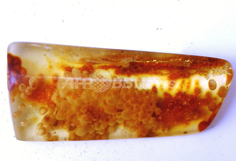 写真は、脊椎動物の血液が入った琥珀(2011年8月9日公開)。(c)AFP/MUSEO PALEONTOLOGICO MEYER-HONNINGER