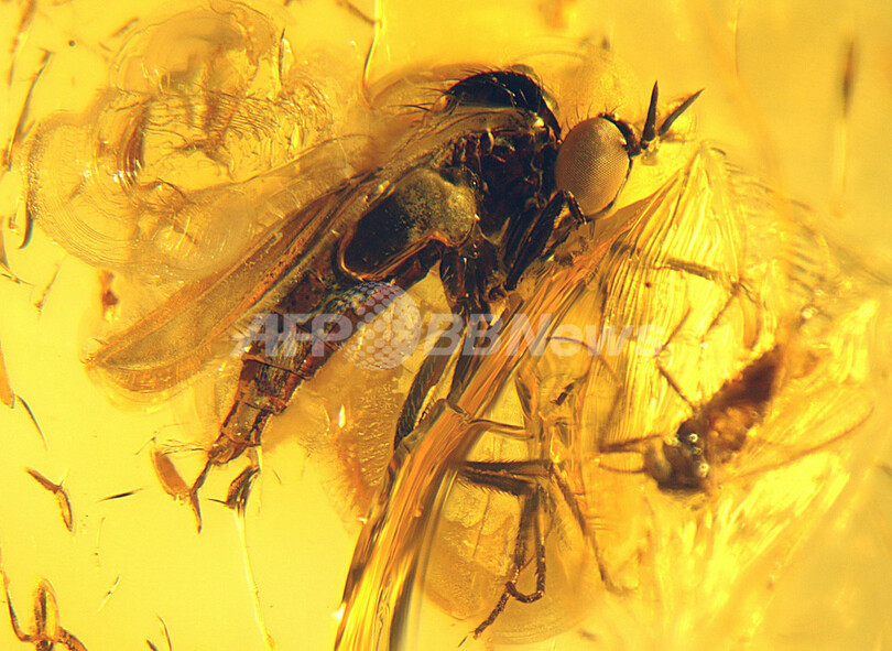 写真は、琥珀に閉じ込められた昆虫(2011年8月9日公開)。(c)AFP/MUSEO PALEONTOLOGICO MEYER-HONNINGER