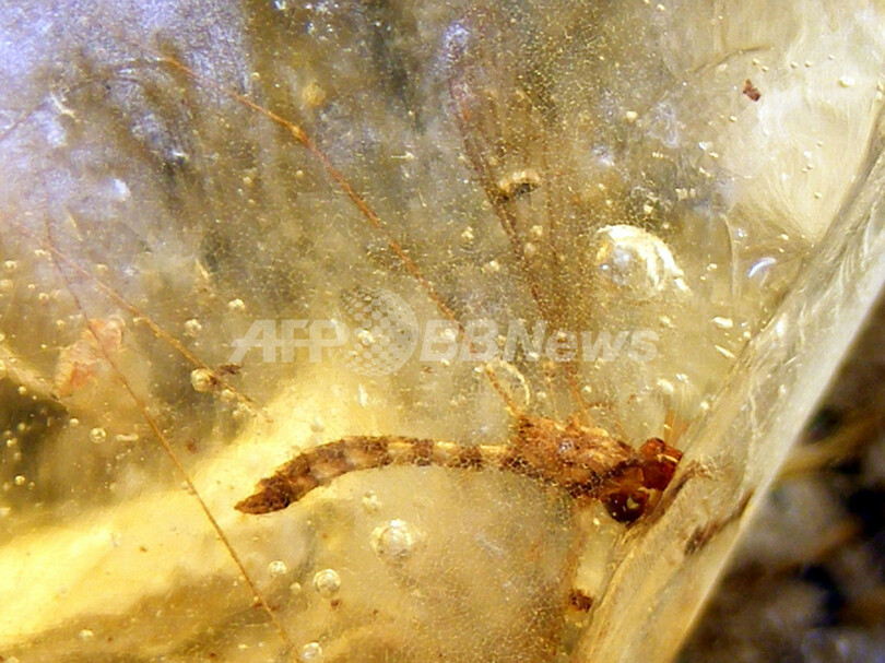 写真は、琥珀に閉じ込められた昆虫(2011年8月9日公開)。(c)AFP/MUSEO PALEONTOLOGICO MEYER-HONNINGER