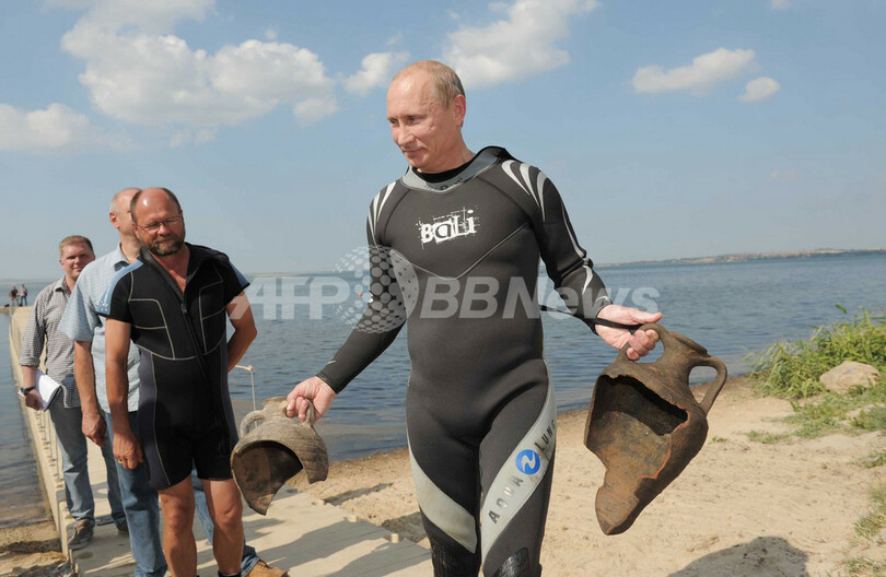 【8月11日 AFP】ロシアの「タフガイ」、ウラジーミル・プーチン(Vladimir Putin)首相は10日、黒海(Black Sea)沿岸にある古代ギリシャの植民都市ファナゴリア(Phanagoria)で海底に眠る遺跡を自ら探索し、6世紀のものと見られるつぼ2個を発見した。