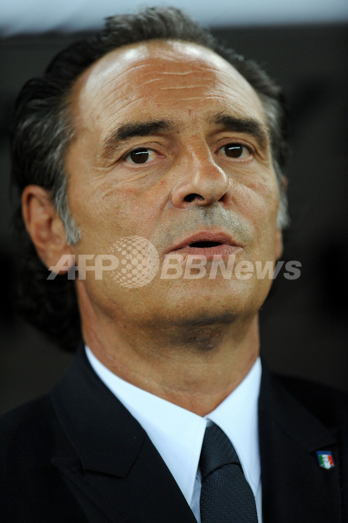 試合開始を待つイタリアのクラウディオ・チェーザレ・プランデッリ(Claudio Cesare Prandelli)監督(2011年8月10日撮影)。(c)AFP/TIZIANA FABI