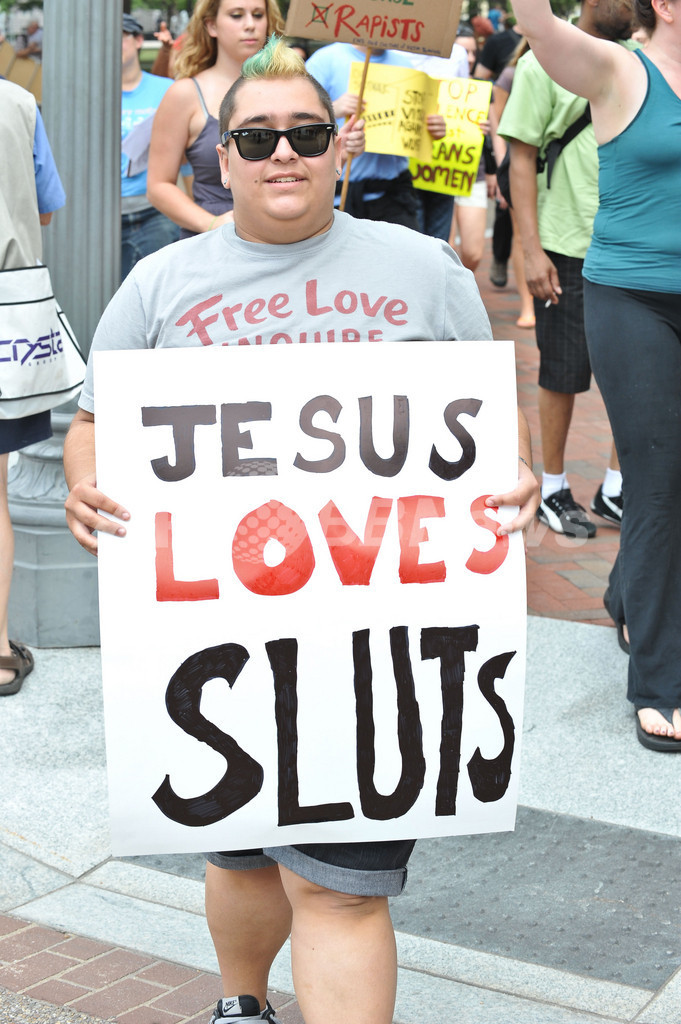 【8月15日 AFP】性犯罪被害を女性の服装と関連づけるのはやめようと訴えるデモ「スラット・ウォーク(SlutWalk)」が13日、米ワシントンD.C.(Washington D.C.)で開かれた。この運動はカナダのトロント(Toronto)で4月、警察官が「性犯罪被害を避けるため、女性たちは、ふしだら(スラット)な服装をすべきではない」と発言したことに抗議する形で始まった。以来、ニュージーランドのオークランド(Auckland)とウェリントン(Wellington)、インドのニューデリー(New Delhi)、韓国・ソウル(Seoul)、オーストラリア・シドニー(Sydney)、米国フィラデルフィア(Philadelphia)など世界各地で行われている。(c)AFP