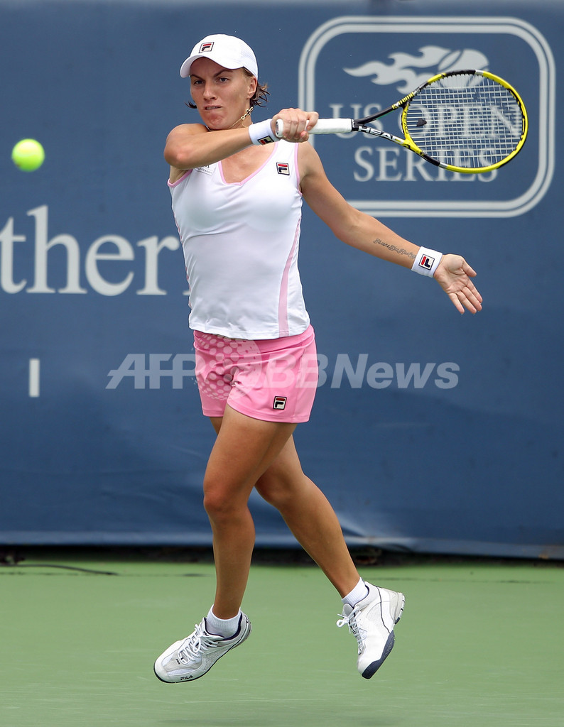 米国のジル・クレイバス(Jill Craybas)を6-3、6-4で下したロシアのスベトラナ・クズネツォワ(Svetlana Kuznetsova、2011年8月15日撮影)。(c)AFP/Getty Images/Elsa