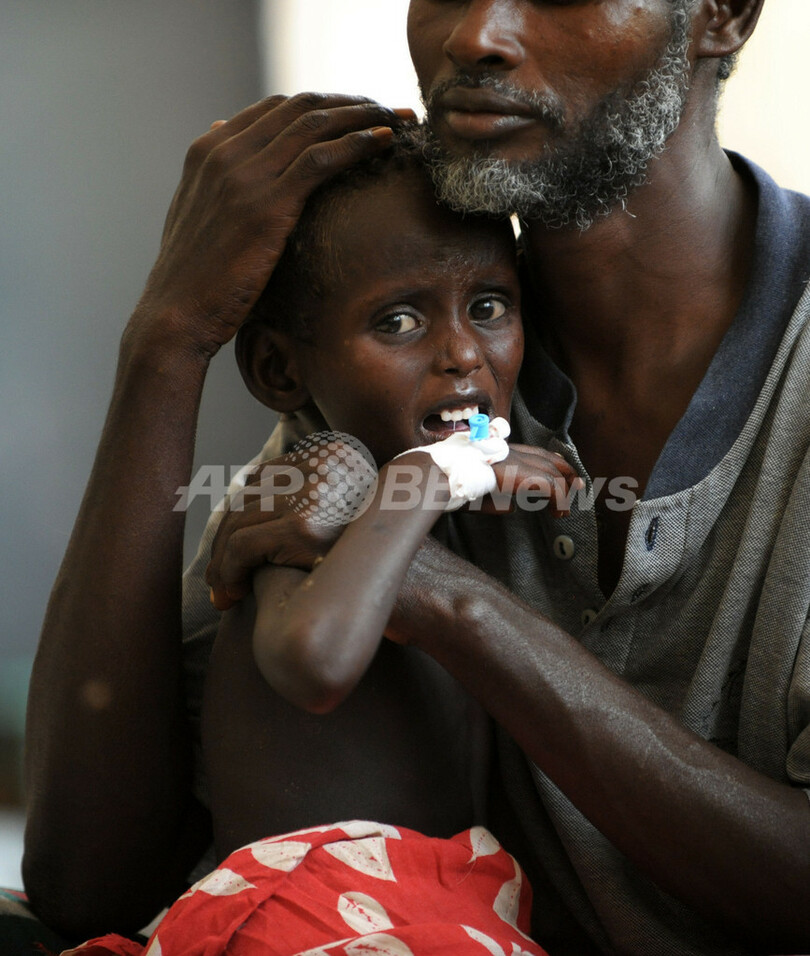 写真はモガディシオの病院で、はしかと栄養失調に苦しむ女の子(2011年8月15日撮影)。(c)AFP/ROBERTO SCHMIDT