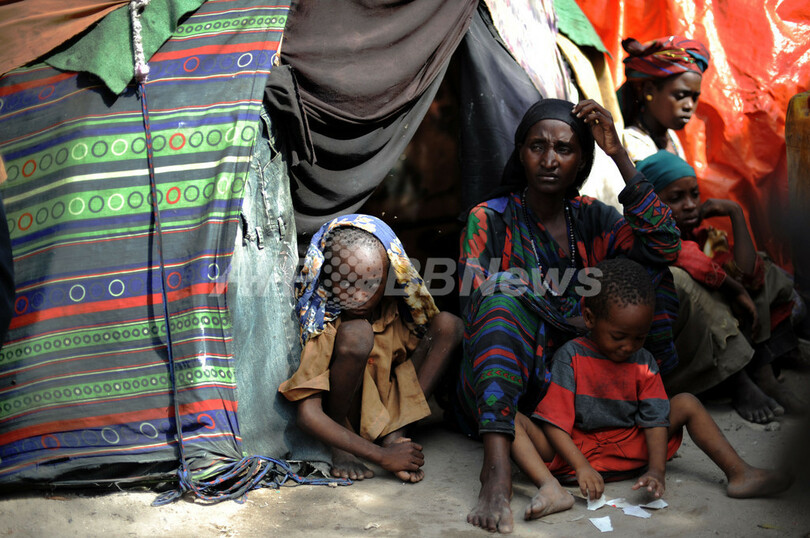 写真はモガディシオの避難民キャンプに暮らす家族(2011年8月15日撮影)。(c)AFP/ROBERTO SCHMIDT