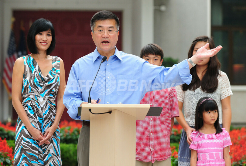 ロック氏は駐中国大使としては初めての中国系米国人。米商務長官などを務めた。英字紙・チャイナ・デーリー(China Daily)は同氏について、「中国と米国の架け橋」になるかもしれないとのコラムを掲載した。(c)AFP