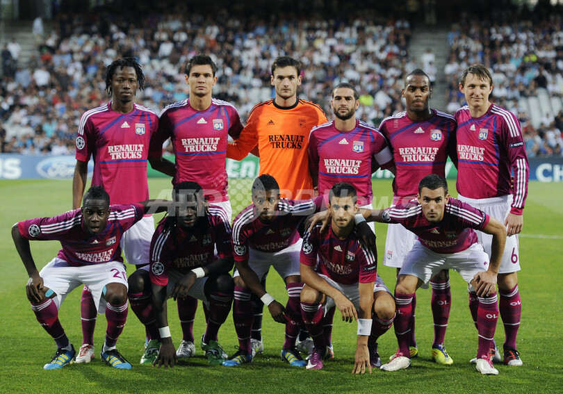 試合前の写真撮影に臨むオリンピック・リヨンの選手(2011年8月16日撮影)。(c)AFP/PHILIPPE DESMAZES