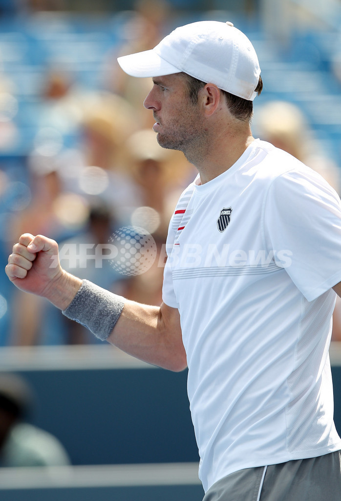 男子シングルス2回戦でロシアのニコライ・ダビデンコ(Nikolay Davydenko)と対戦し、6-0、6-2で快勝した大会第7シードのマーディー・フィッシュ(Mardy Fish、2011年8月17日撮影)(c)AFP/Getty Images/Elsa