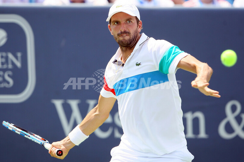 男子シングルス2回戦で大会第2シードのラファエル・ナダル(Rafael Nadal、スペイン)に4-6、5-7で敗れたフランスのジュリアン・ベネトー(Julien Benneteau、2011年8月17日撮影)(c)AFP/Getty Images/Elsa
