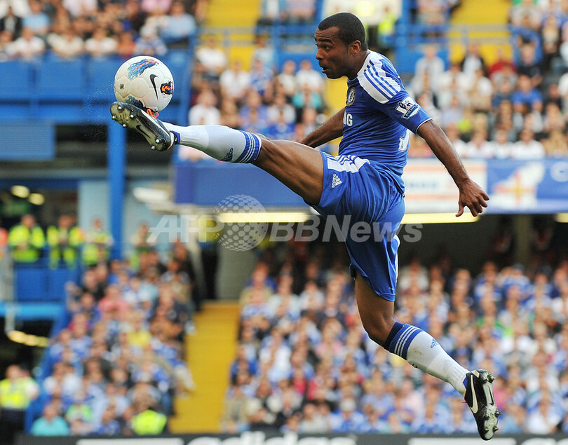 ボールをコントロールするチェルシーのアシュリー・コール(Ashley Cole 2011年8月20日撮影)。(c)AFP/GLYN KIRK