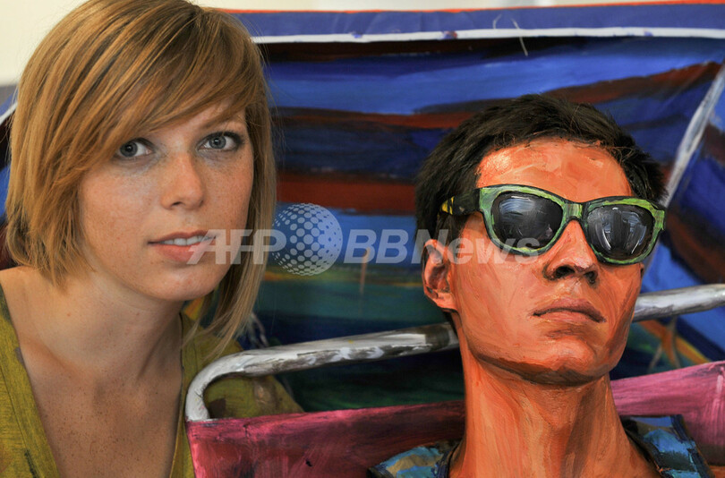 【8月21日 AFP】米ワシントンD.C.(Washington D.C.)のアーバイン・コンテンポラリー美術館で20日、まるで油絵のように人物にボディーペインティングを施す米アーティスト、アレクサ・ミード(Alexa Meade)さん(24)によるパフォーマンスが行われた。ミードさんは、人物に油絵のようにペインティングを行い、油絵風ではない普通のセットや、油絵の背景画の前に配して写真を撮影する。(c)AFP