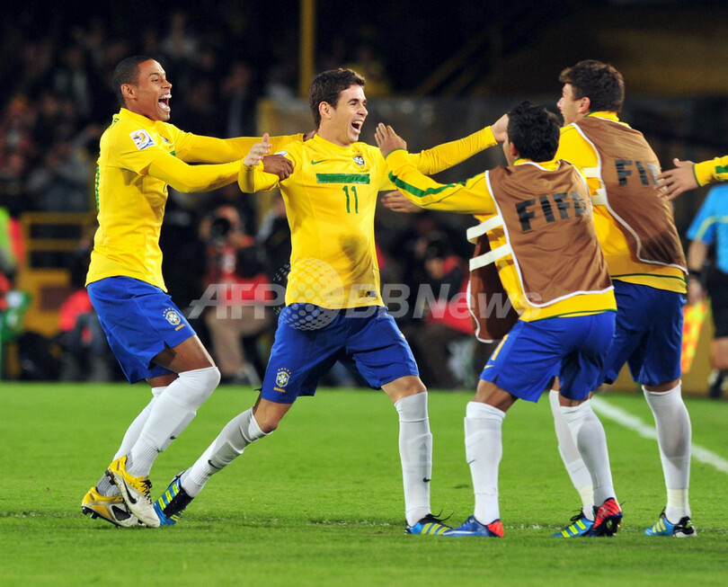 【8月21日 AFP】サッカー、U-20W杯コロンビア大会(FIFA U-20 World Cup Colombia 2011)は20日、ボゴタ(Bogota)のエスタディオ・ネメシオ・カマーチョ(Estadio Nemesio Camacho)で決勝が行われ、オスカル(Oscar dos Santos Emboaba Junior)のハットトリックの活躍により、ブラジルが延長の末3-2でポルトガルを下し、優勝を飾った。(c)AFP