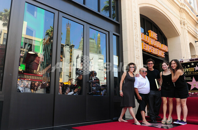 写真は、家族と一緒に星型を踏むデヴィート(2011年8月18日撮影)。(c)AFP/Frederic J.BROWN