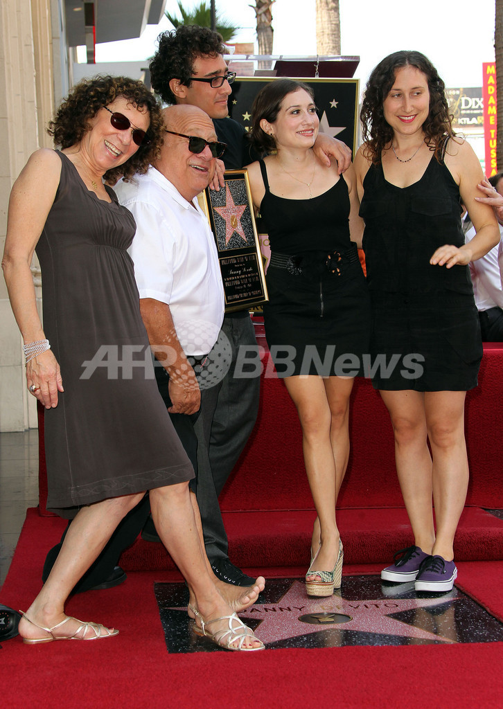 写真は、家族とともに星型を踏むデヴィート(2011年8月18日撮影)。(c)AFP/Getty Images/Frederick M. Brown
