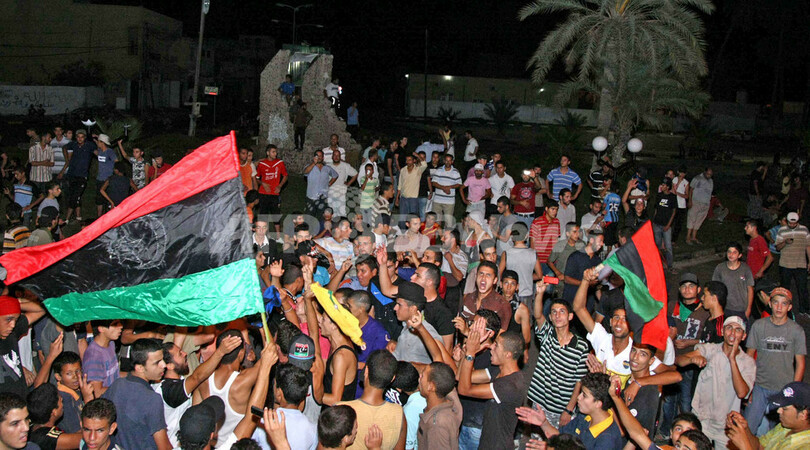 21日夜、トリポリ市内の通りには反体制派を歓迎する市民らがあふれた。スカイニューズ(Sky News)は、反体制派を象徴する赤、黒、緑の旗を振る群衆が「神は偉大なり」と叫び踊り喜ぶ姿や、空に向けて銃を撃つ映像を放映。現地特派員は人々がVサインを掲げてカダフィ大佐のポスターを燃やしていると伝えた。反体制派は「緑の広場」を「殉教者広場(Martyrs Square)」と改名した。