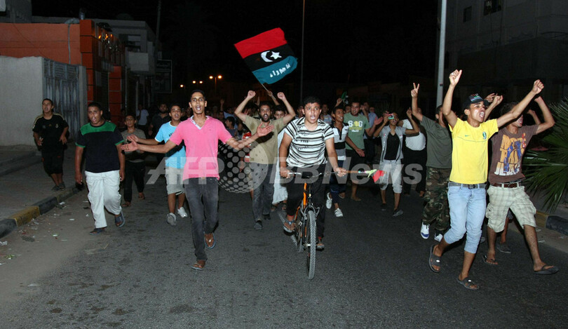 反体制派の拠点となっている東部ベンガジ(Benghazi)でも同様に、人々が「暴君カダフィの終焉」を喜ぶ姿が見られている。