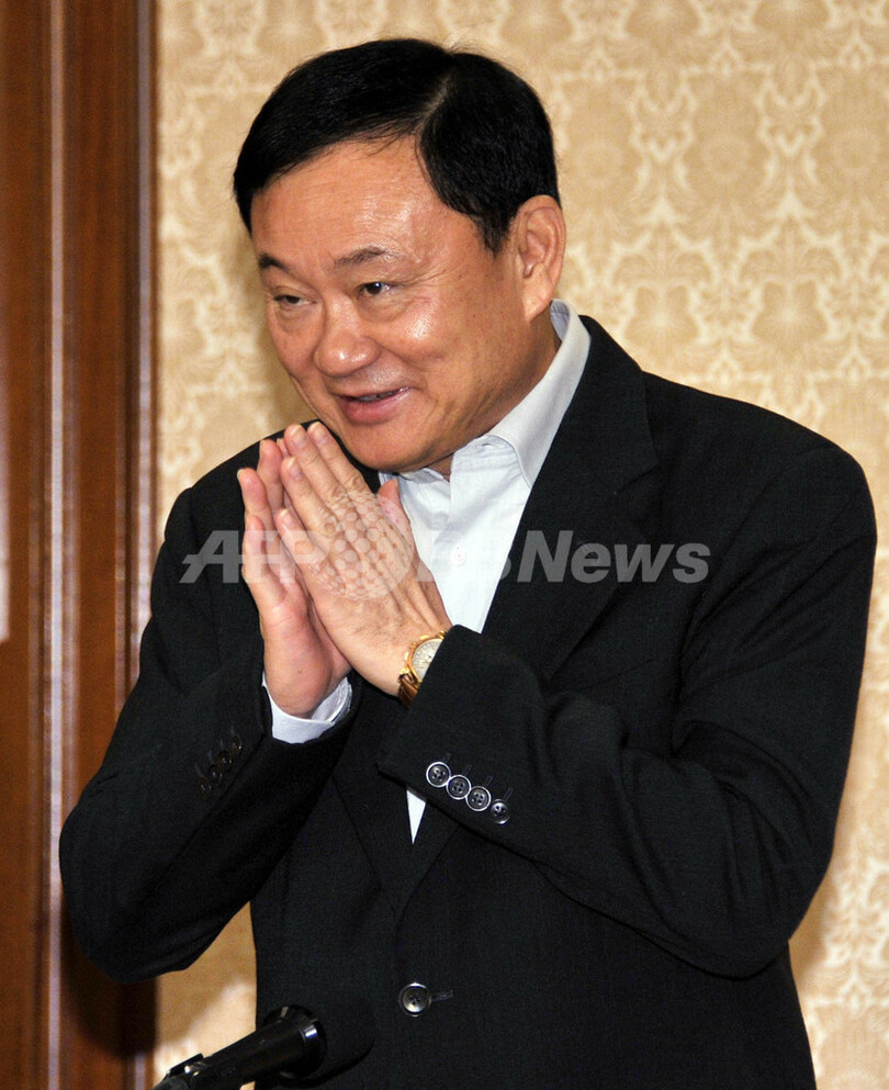 【8月24日 AFP】汚職事件で確定した実刑を逃れるため亡命生活を送っているタイのタクシン・シナワット(Thaksin Shinawatra)元首相が来日し、23日に都内で記者会見し、近い将来タイに帰国する計画はなく、実妹のインラック・シナワット(Yingluck Shinawatra)首相が率いる発足2週間目の現政権にも口を出すつもりはないと述べた。