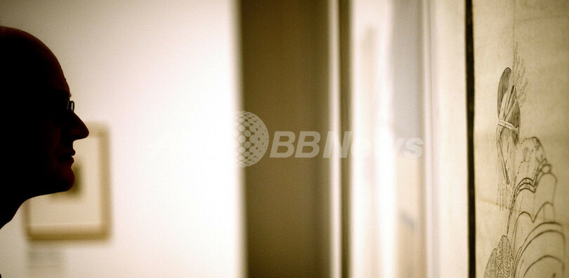 ドイツ・ベルリン(Berlin)の博物館「マルティン・グロピウス・バウ(Martin Gropius Bau)」で26日から、葛飾北斎(Hokusai Katsushika)の浮世絵などの作品を集めた「北斎展」が一般公開される。写真は、展示された北斎の作品を見つめる美術評論家(2011年8月25日撮影)。(c)AFP/ODD ANDERSEN