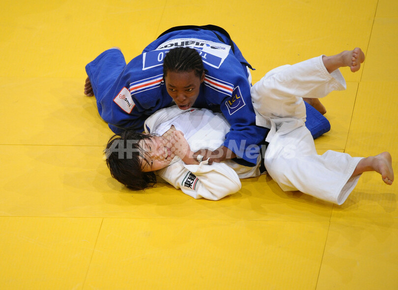 また、女子70キロ級では國原頼子(Yoriko Kunihara)が銅メダルを獲得、金メダルはリュシ・ドコス(Lucie Decosse、フランス)が手にしている。(c)AFP/Barnaby Chesterman