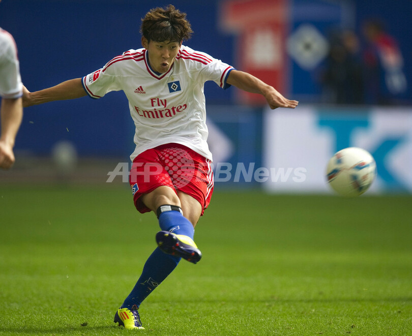シュートを放つハンブルガーSVの孫興民(Heung Min Son、ソン・フンミン、2011年8月27日撮影)。(c)AFP/ODD ANDERSEN