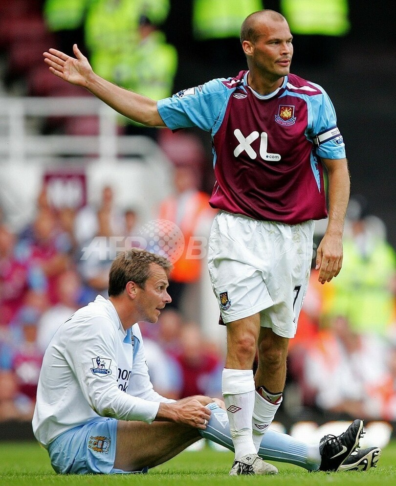 07-08イングランド・プレミアリーグ、マンチェスター・シティ(Manchester City)戦に出場するウェストハム(West Ham)のフレドリク・リュングベリ(Fredrik Ljungberg、2007年8月11日撮影)。(c)AFP/CARL DE SOUZA
