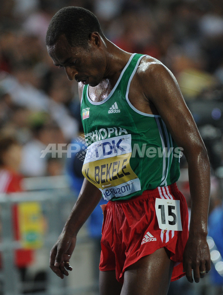 途中棄権し、トラックを後にするエチオピアのケネニサ・ベケレ(Kenenisa Bekele、2011年8月28日撮影)。(c)AFP/OLIVIER MORIN
