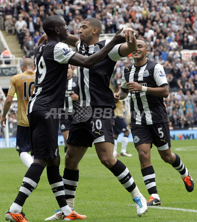 ゴールを決め喜ぶニューカッスルのレオン・ベスト(Leon Best、中央、2011年8月28日撮影)。(c)AFP/IAIN BUIST