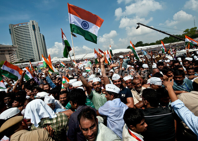 ニューデリー中心部のラムリラ(Ramlila)広場に設けられた屋外会場でハンストを続けてきたハザレ氏のもとには毎日数万人が訪れるなど、ハザレ氏の主張を支持する運動は全国規模に拡大し、政府の姿勢が世論から乖離(かいり)していた実態があらわになっていた。