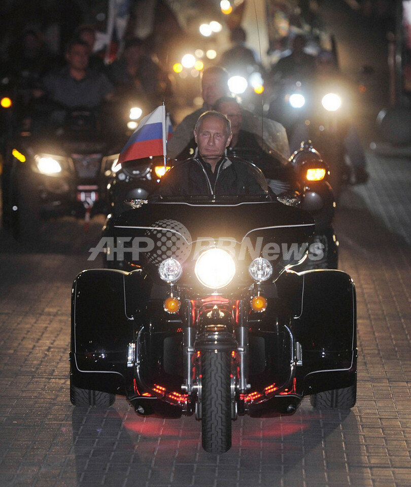 「ロシアは一つ」 ハーレーにまたがるプーチン首相、オートバイ集会で演説