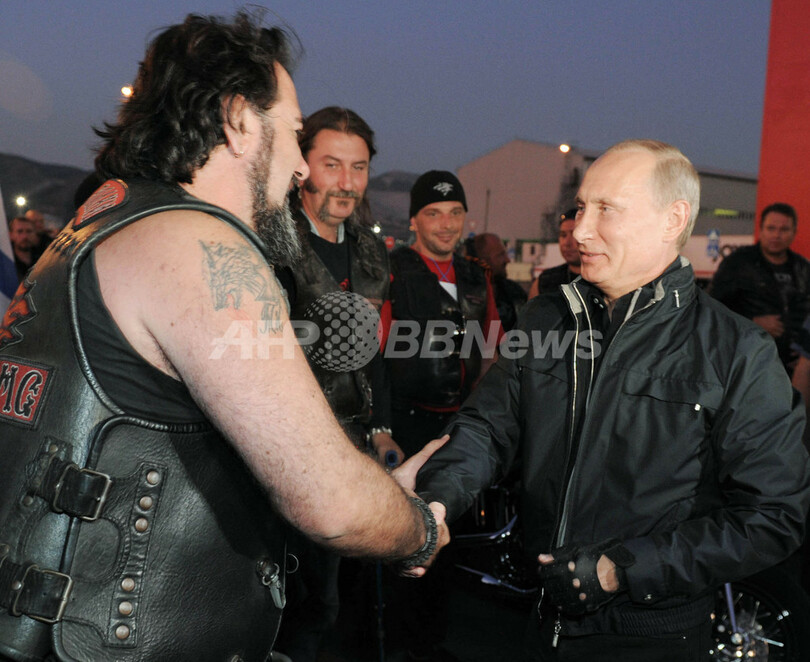 このイベントは、オートバイ集団「ナチヌイエ・ボルキ(夜の狼たち、Night Wolves)」が主催した。タス通信(ITAR-TASS)はこの集会について「愛国的な志向の国際バイクショー」と伝えている。(c)AFP