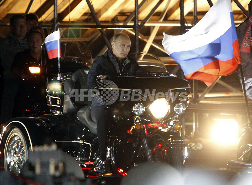 「ロシアは一つ」 ハーレーにまたがるプーチン首相、オートバイ集会で演説