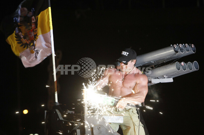 このイベントは、オートバイ集団「ナチヌイエ・ボルキ(夜の狼たち、Night Wolves)」が主催した。タス通信(ITAR-TASS)はこの集会について「愛国的な志向の国際バイクショー」と伝えている。(c)AFP