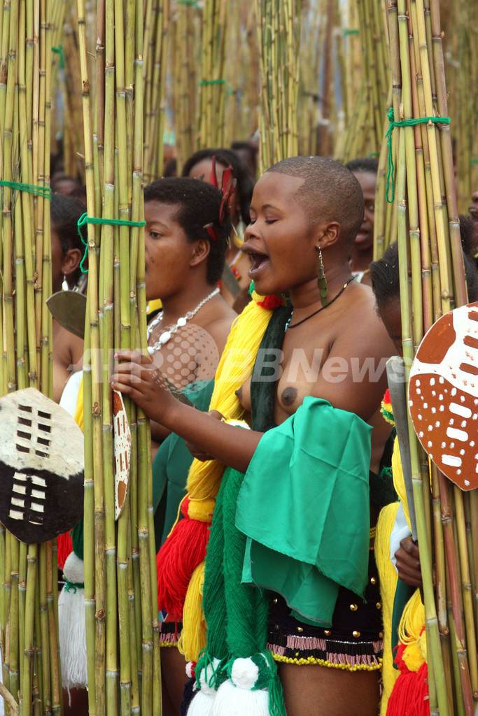 国中から集まった少女たち(最年少は10歳)は、上半身はだかのまま、周囲の丘から刈り取ったアシを王宮に捧げ、国王ムスワティ3世(King Mswati III)の前でダンスを披露した。