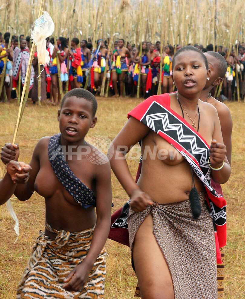 国中から集まった少女たち(最年少は10歳)は、上半身はだかのまま、周囲の丘から刈り取ったアシを王宮に捧げ、国王ムスワティ3世(King Mswati III)の前でダンスを披露した。