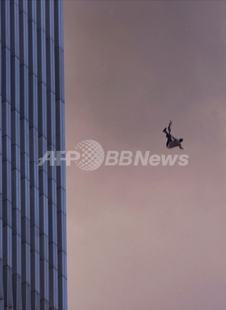 米国は11日、2001年9月11日の同時多発テロから10年を迎える。写真は、ハイジャック機が突っ込み崩壊、炎上するニューヨーク(New York)の世界貿易センタービル(World Trade Center、WTC)から飛び降りる人(2001年9月11日撮影)。(c)AFP/Getty Images/Primera Hora/Jose Jimenez