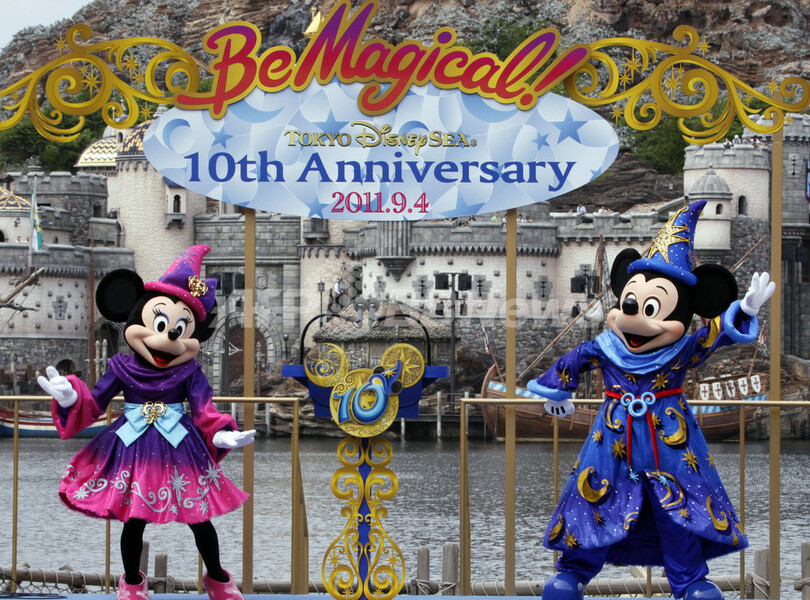 【9月4日 AFP】千葉県浦安市の東京ディズニーシー(Tokyo DisneySea)は4日、開業10周年を迎え、ミッキーマウスらディズニーキャラクターたちが来園者を歓迎した。イベントには、オリエンタルランド(Oriental Land)の上西京一郎(Kyoichiro Uenishi)社長や加賀見俊夫(Toshio Kagami)会長、ウォルト・ディズニー・パークス・アンド・リゾーツ(Walt Disney Parks and Resort)のトム・スタッグス(Tom Staggs)会長、東京ディズニーリゾート・アンバサダーの馬場智子(Tomoko Baba)さんらも登場した。10周年記念プログラム「Be Magical!」は来年の3月19日まで続く。(c)AFP
