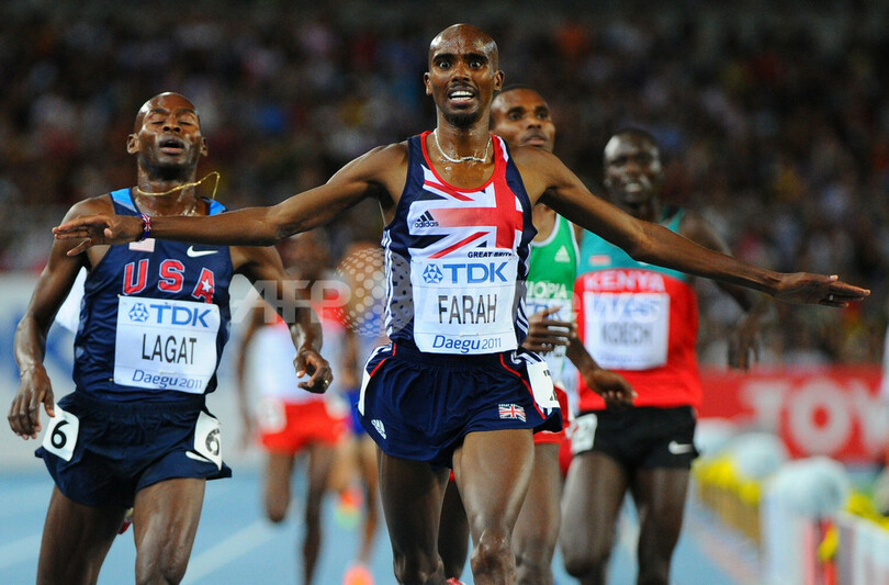 男子5000メ-トルは英国のモハメド・ファラー(Mohammed Farah)が13分23秒36で金メダルを獲得した。銀メダルは、米国のバーナード・ラガト(Bernard Lagat)が13分23秒64で銀メダル、エチオピアのデジェン・ゲブレメスケル(Dejen Gebremeskel)が13分23秒92で銅メダルを獲得した。(c)AFP