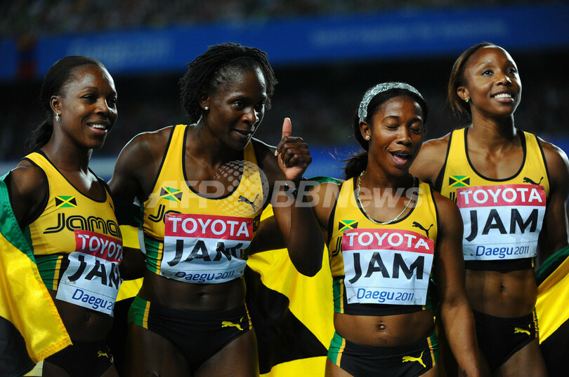 【9月4日 AFP】第13回世界陸上大邱大会(13th IAAF World Championships in Athletics Daegu)は4日、男子4×100メートルリレー決勝が行われ、ジャマイカが37秒04の世界新記録で金メダルを獲得した。