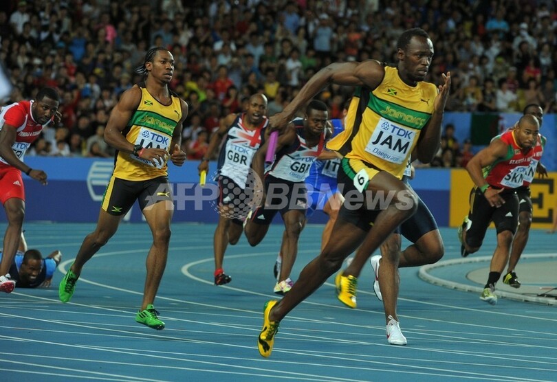 【9月4日 AFP】第13回世界陸上大邱大会(13th IAAF World Championships in Athletics Daegu)は4日、男子4×100メートルリレー決勝が行われ、ジャマイカが37秒04の世界新記録で金メダルを獲得した。