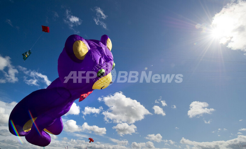 【9月5日 AFP】英南西部ブリストル(Bristol)にある自然公園、アシュトン・コート・エステート(Ashton Court Estate)で4日、「第25回ブリストル国際カイトフェスティバル(Bristol International Kite Festival)」が開かれ、ユニークな色や形のたこが空を舞った。世界最大のたこを揚げる計画は、強風のため中止された。(c)AFP