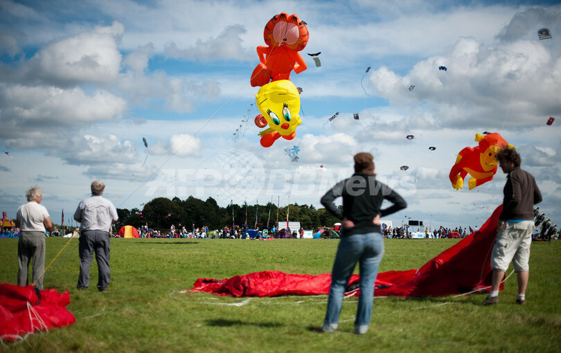 【9月5日 AFP】英南西部ブリストル(Bristol)にある自然公園、アシュトン・コート・エステート(Ashton Court Estate)で4日、「第25回ブリストル国際カイトフェスティバル(Bristol International Kite Festival)」が開かれ、ユニークな色や形のたこが空を舞った。世界最大のたこを揚げる計画は、強風のため中止された。(c)AFP