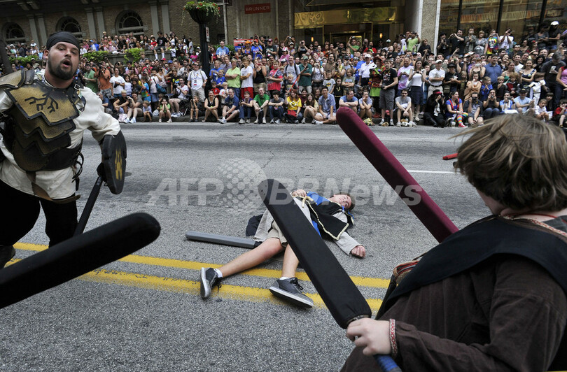 米ジョージア(Georgia)州アトランタ(Atlanta)で前週、毎年「レーバーデー(労働者の日、Labor Day)」の週末に開催されるアニメやゲーム、SFの祭典「ドラゴン・コン(Dragon Con)」が開催された。写真は、パレードに参加したコスプレイヤー(2011年9月3日撮影)。(c)AFP/JOHN AMIS