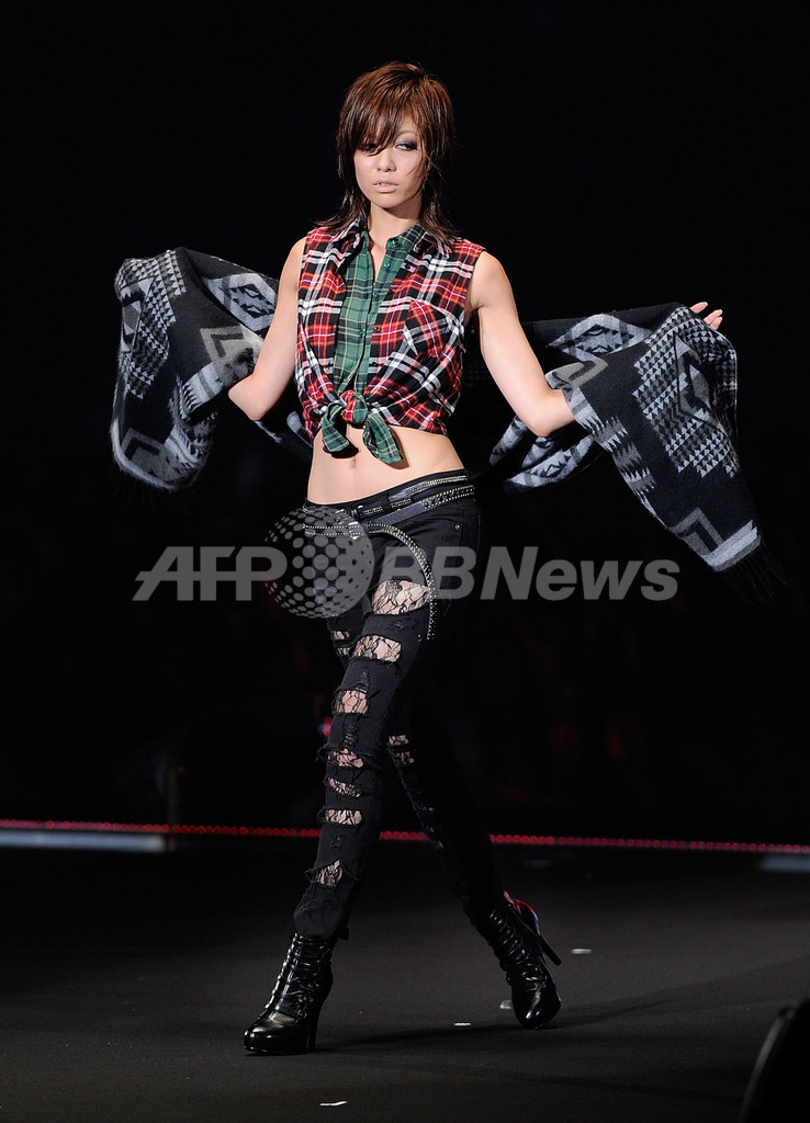 ステージでは、国内外のブランドによるファッションショーが行われ、山田優(Yu Yamada)、木下優樹菜(Yukina Kinoshita)、佐々木希(Nozomi Sasaki)ら多数の人気モデルが登場。アーティストライブ、チャリティーオークションなども行われた。(c)AFP
