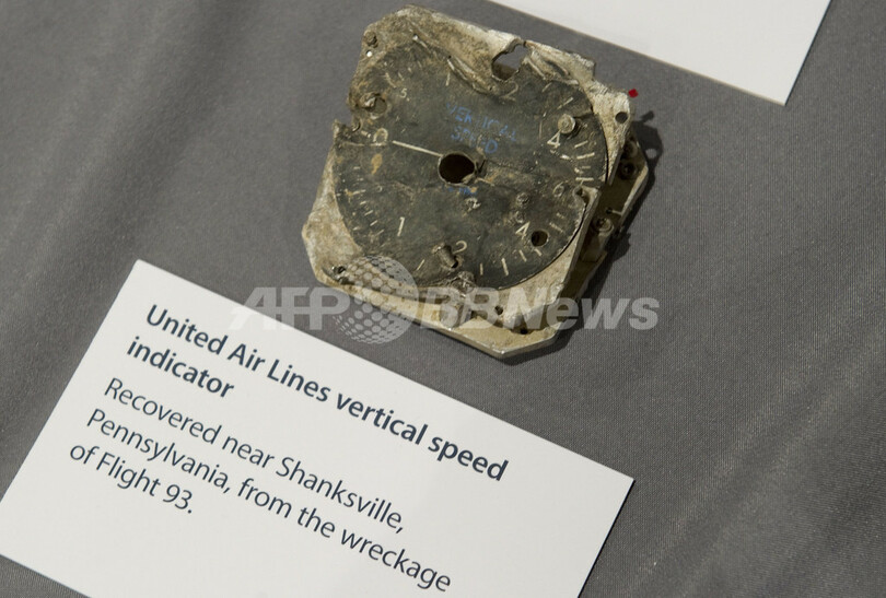 写真は、シャンクスビルに墜落したユナイテッド航空93便のコックピットの垂直速度計(2011年9月1日撮影)。(c)AFP/Saul LOEB