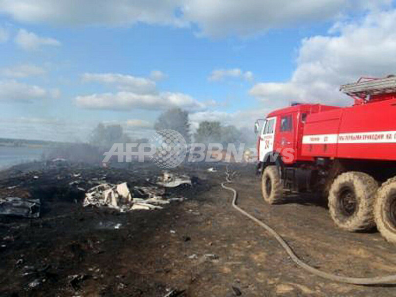 墜落事故について、地元警察は「旅客機は必要な高度に達することができずに障害物に衝突してバラバラになり、衝撃で炎上した」と説明している。(c)AFP/Anna Smolchenko