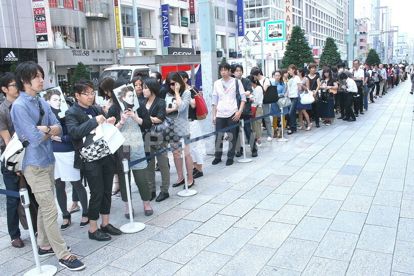 銀座店前には7時30分頃から当選者が集まり、先行販売会がスタートする午前10時には約170名が店舗脇の歩道に並んだ。オープンから1時間が経過した午後11時には、銀座五丁目交差点の先まで行列ができ た。