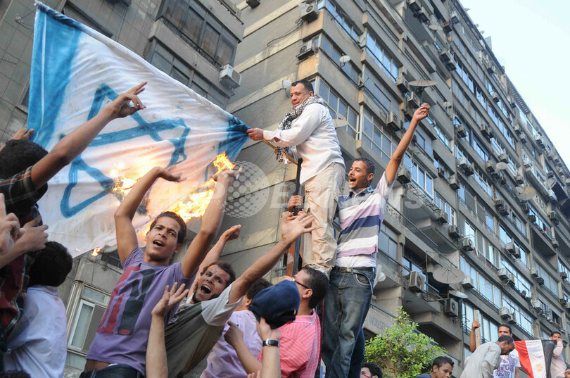 エジプトはアラブの国として初めて1979年にイスラエルと平和条約を結んで外交関係を樹立したが、ムバラク前大統領が辞任した2月以降、活動家の間ではイスラエルとの平和条約の見直しを求める声も上がっていた。(c)AFP/Mona Salem